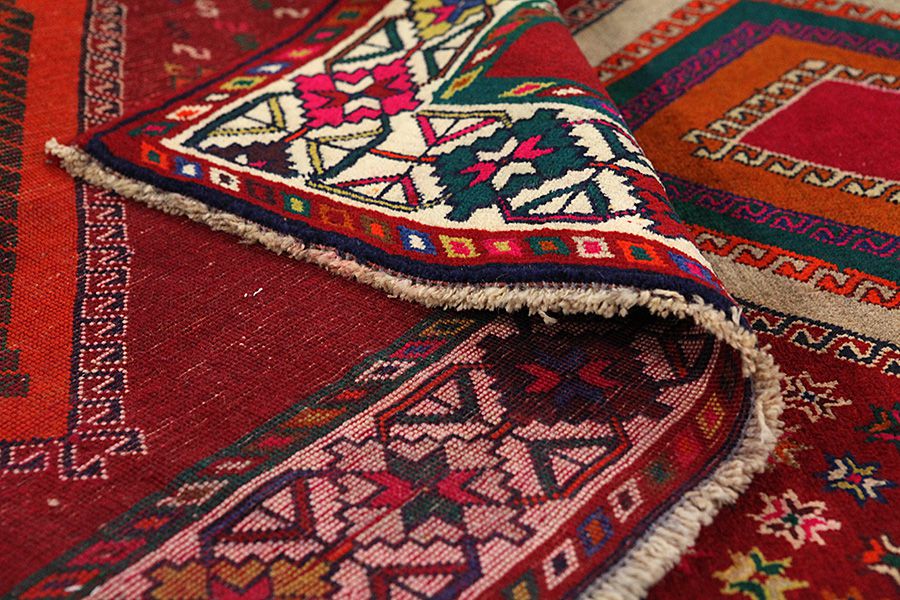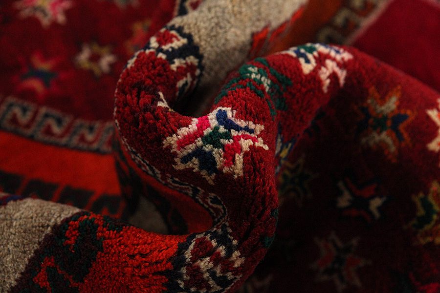 Abrash: Auf Grund des unterschiedlichen Wollfettgehalts und der unterschiedlichen Salzmenge während des Färbungsprozesses, hat die Wolle eine unterschiedliche Farbaufsaugfähigkeit. Vor dem Weben ist es nicht so sichtbar. Aber beim Weben entstehen Reihen mit unterschiedlichen Farbabstufungen der gleichen Farbe. Dies heißt Abrash und verdeutlicht die Natürlichkeit und die Originalität der Wolle, die mit keinen chemischen Mitteln behandelt wurde. Beispiele