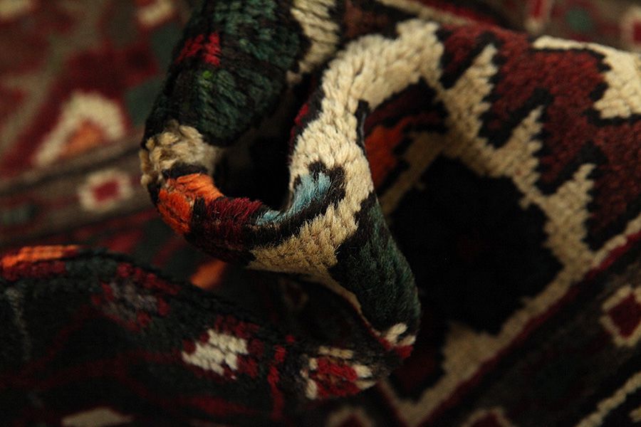 Abrash: Auf Grund des unterschiedlichen Wollfettgehalts und der unterschiedlichen Salzmenge während des Färbungsprozesses, hat die Wolle eine unterschiedliche Farbaufsaugfähigkeit. Vor dem Weben ist es nicht so sichtbar. Aber beim Weben entstehen Reihen mit unterschiedlichen Farbabstufungen der gleichen Farbe. Dies heißt Abrash und verdeutlicht die Natürlichkeit und die Originalität der Wolle, die mit keinen chemischen Mitteln behandelt wurde. Beispiele