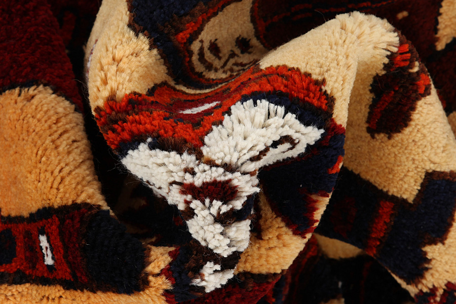 Abrash: Auf Grund des unterschiedlichen Wollfettgehalts und der unterschiedlichen Salzmenge während des Färbungsprozesses, hat die Wolle eine unterschiedliche Farbaufsaugfähigkeit. Vor dem Weben ist es nicht so sichtbar. Aber beim Weben entstehen Reihen mit unterschiedlichen Farbabstufungen der gleichen Farbe. Dies heißt Abrash und verdeutlicht die Natürlichkeit und die Originalität der Wolle, die mit keinen chemischen Mitteln behandelt wurde. Beispiele