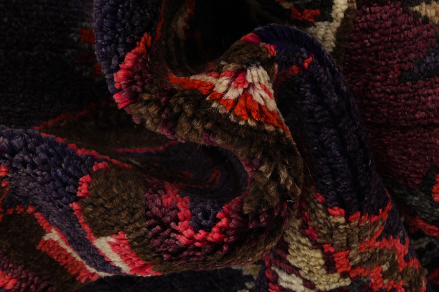Abrash: Auf Grund des unterschiedlichen Wollfettgehalts und der unterschiedlichen Salzmenge während des Färbungsprozesses, hat die Wolle eine unterschiedliche Farbaufsaugfähigkeit. Vor dem Weben ist es nicht so sichtbar. Aber beim Weben entstehen Reihen mit unterschiedlichen Farbabstufungen der gleichen Farbe. Dies heißt Abrash und verdeutlicht die Natürlichkeit und die Originalität der Wolle, die mit keinen chemischen Mitteln behandelt wurde. Beispiele