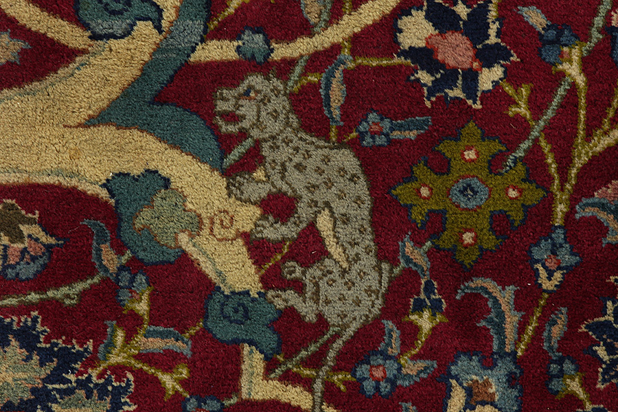 Tapis Tabriz: La ville Tabriz est la capitale de la province Azerbaïjan au sud-ouest d’Iran. Jusqu’à la fin de l’époque des caravanes Tabriz était le centre le plus important du commerce et du tissage des tapis. Par ici l’Ouest s’approvisionnait les chefs d’œuvres que des tisseurs renommés et capables tissent. Leurs qualités élevées ont fait les tapis connus aux marchés internationaux. Des atéliers des tapis noués à la main ont été crées où ils tissent de vieux et de nouveaux dessins avec une très grande densité en nœuds avec des matériaux de qualité excellente. La soie et la laine qualintative fine font les tapis de première classe. C’est la seule ville de Perse qui produit un si grand volume et et une si grande variété des tapis. Les tapis Tabriz sont impossants et ils ont leur style et leur originalité avec ou sans médaillon, avec des dessins pleins de l’imagination et de l’unicité des fleurs, des répresentations, des strophes, des poèmes à des couleurs comme le beige, le bleu et le rouge