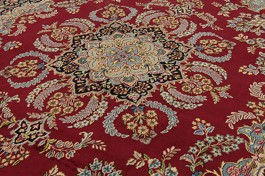 Die Teppichherstellung, eine alte Tradition der Stadt Kirman, ist einer der größten Industriezweige der Stadt. Die Teppiche, die dort gefertigt werden, sind weltweit bekannt. Der älteste Teppich, der in Kirman gefunden wurde, ist 500 Jahre alt, was die Widerstandsfähigkeit und die Qualität der Teppiche, die dort gefertigt werden, beweist. Außerdem werden auch andere Textilien aus Baumwolle oder aus Wolle, z.B. Tücher und dünne Stoffe, so wie früher gefertigt. Als 1271 Marco Polo die Stadt besucht hat, ist Kirman ein Handelszentrum geworden, das den Persischen Golf mit Khorasan und Zentralasien verbunden hat. Während der Dynastie der Safawiden, wurden Teppiche nach England und Deutschland exportiert. Typisch für Kirman Teppiche sind die leuchtenden Farben und die große Anzahl an wunderschönen Blumen, Girlanden und Medaillons. Die Wolle in der Gegend Kermans weist eine hohe Qualität auf und ist reich an Wollfett, was sie überaus glänzend macht.