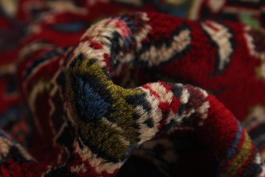 Die Teppichfarben ändern sich je nachdem von welcher Seite er betrachtet wird. Sie können den Teppich auf den folgenden Bildern aus verschiedenen Perspektiven betrachten: