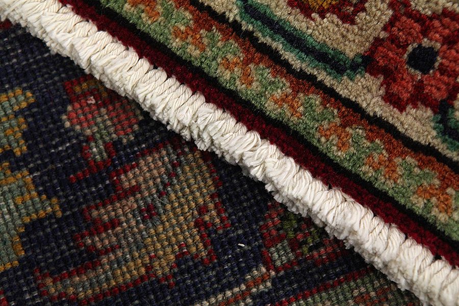 Abrash: Auf Grund des unterschiedlichen Wollfettgehalts und der unterschiedlichen Salzmenge während des Färbungsprozesses, hat die Wolle eine unterschiedliche Farbaufsaugfähigkeit. Vor dem Weben ist es nicht so sichtbar. Aber beim Weben entstehen Reihen mit unterschiedlichen Farbabstufungen der gleichen Farbe. Dies heißt Abrash und verdeutlicht die Natürlichkeit und die Originalität der Wolle, die mit keinen chemischen Mitteln behandelt wurde. Beispiele