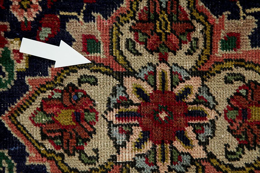 Abrash: Causa la differente grassezza delle lane e la differente quantità di sale ,nel corso del processo di tintura ,le lane assorbono quantitativi diversi di colore.Questo non è tanto visibile prima della tintura .Nel corso della tessitura però risultano variazioni cromatiche. Questo si chiama Abrash ed è la prova della genuinità e dell' autenticità di questi tappeti ,per i quali non vengono usate sostanze chimiche. Esempi