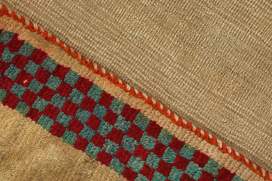 Tapis Gabbeh: Gabbeh signifie naturel, primitif en langue persienne. Les tapis et les tissus qui s’appellent Gabbeh sont tissés par des nomades. Ghashghais qui vivent aux villages au sud-ouest d’Iran. Les fils sont traités et sont tordrus à la main, ils sont teints avec des couleurs naturelles et ils sont tissés à une chaîne de laine à un épaisseur jusqu’à 2 centimètre. Ces tapis sont simples avec de peu nombreux dessins ou des dessins unicolores. Des dessins des animaux dans leur milleu naturel, des figures humaines à une forme rectangulaire font les tapis plus modernes. Des noms comme Basic, Amalehbaft, Kaskooli, Luribaft et Sumak. Un tapis Gabbeh Kashkooli est un tapis avec une superieure densité en nœuds et il est plus fin que un tapis ordinaire Gabbeh. Les tapis persans Gabbel sont plus résistants et leur qualité est très bonne.