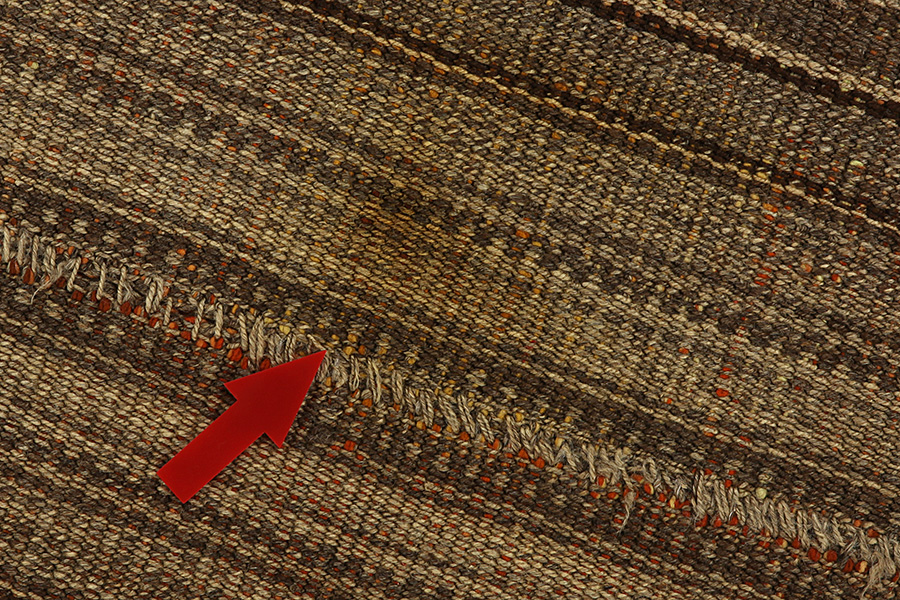 Gewebter Teil an einer oder auf beiden Teppichseiten: Die Nomaden weben an manchen Teppichen an der einen oder auch an beiden Breitseiten Fransen auf einen schmalen gewebten Teil des Teppichs, oder sie flechten die Fransen kunstvoll zu kleinen Zöpfen. Dies ist eine Technik von verschiedenen Webern, um eine größere Widerstandsfähigkeit oder einfach um ihre Kunstfertigkeit zu zeigen. Beispiele