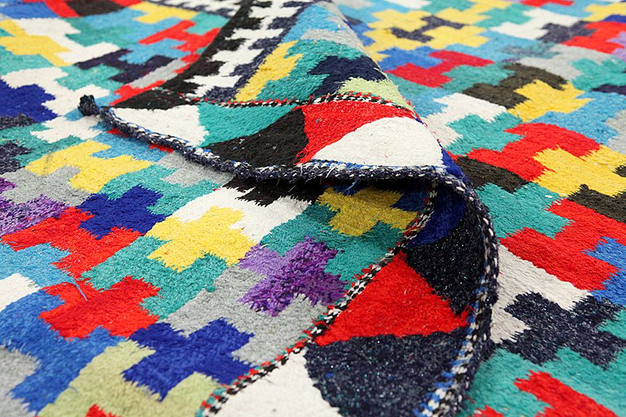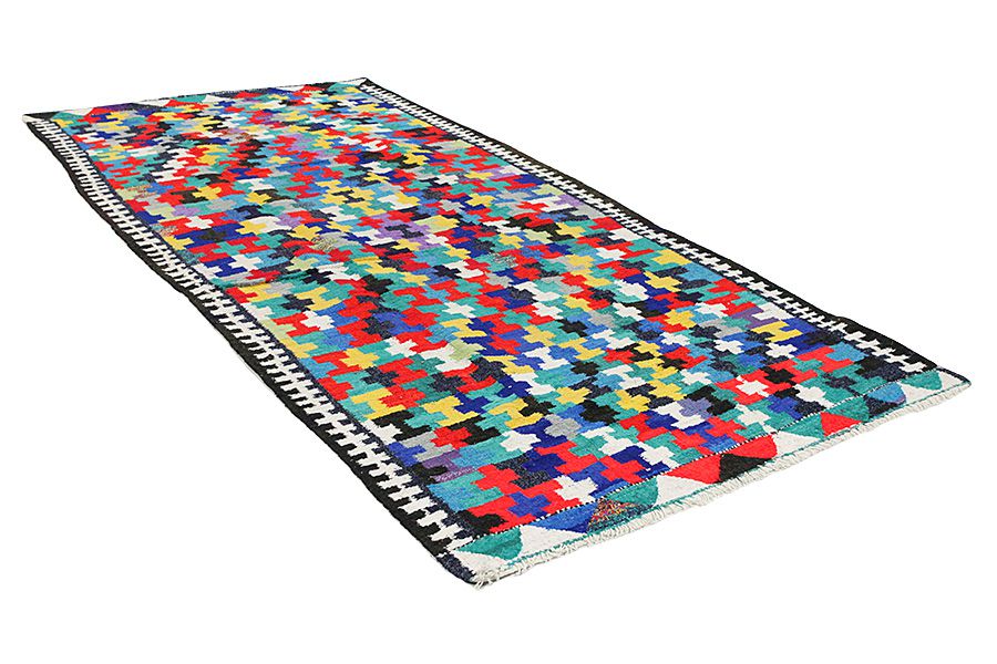 Tapis Kilim: C’est un type prècis du tapis-tissé sans velours (qui est le type précédent de celui avec le velours) et ils sont fabriqués surtout par des nomades en Perse, en Afghanistan, en Turquie et à des régions différentes de Caucasse. Il s’agit des tissés pas de grandes dimensions avec un tissage simple, sans velours. Ils ont comme des caractèristiques des figures géometriques et des associations des couleurs très riches. Des matières naturelles comme la laine sont utilisés pour le tissage et quelquefois aussi la soie pour les kilims plus legers et plus fins. Le chromatisme du fil est fait par des plantes et des métaux qui donnent de beaux nuances naturels. La tradition séculaire des kilims se perd aux siècles aux nomades d’Asie centrale. D’abord, les kilims étaient surtout des articles d’utilisation domestique et plus tard sont devenus des produits commercialisables en suivant les meilleurs techniques de la tapisserie d’ est pendant le 16ième et le 17ième siècle. Ils ont aussi plusieurs utilisations et ils peuvent être utilisés au plancher comme des couvertures ou pour décoration aux murs. Le nom Kilim vient du mot persan gelim. Ils s’appellent Berr en kurde. Les plus fameux kilims persans sont les kilims Sumakh, Senneh, Fars et Ghashghai. Des kilims afghans sont les kilims Golbariasta, Maimane, Taimani, Maliki e.t.c Plusiers kilims sont tissés aussi aux frontières entre la Perse et l’Afghanistan par des nomades de Balouch avec les couleurs foncées de Terre.