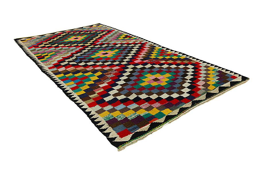 Tapis Kilim: C’est un type prècis du tapis-tissé sans velours (qui est le type précédent de celui avec le velours) et ils sont fabriqués surtout par des nomades en Perse, en Afghanistan, en Turquie et à des régions différentes de Caucasse. Il s’agit des tissés pas de grandes dimensions avec un tissage simple, sans velours. Ils ont comme des caractèristiques des figures géometriques et des associations des couleurs très riches. Des matières naturelles comme la laine sont utilisés pour le tissage et quelquefois aussi la soie pour les kilims plus legers et plus fins. Le chromatisme du fil est fait par des plantes et des métaux qui donnent de beaux nuances naturels. La tradition séculaire des kilims se perd aux siècles aux nomades d’Asie centrale. D’abord, les kilims étaient surtout des articles d’utilisation domestique et plus tard sont devenus des produits commercialisables en suivant les meilleurs techniques de la tapisserie d’ est pendant le 16ième et le 17ième siècle. Ils ont aussi plusieurs utilisations et ils peuvent être utilisés au plancher comme des couvertures ou pour décoration aux murs. Le nom Kilim vient du mot persan gelim. Ils s’appellent Berr en kurde. Les plus fameux kilims persans sont les kilims Sumakh, Senneh, Fars et Ghashghai. Des kilims afghans sont les kilims Golbariasta, Maimane, Taimani, Maliki e.t.c Plusiers kilims sont tissés aussi aux frontières entre la Perse et l’Afghanistan par des nomades de Balouch avec les couleurs foncées de Terre.