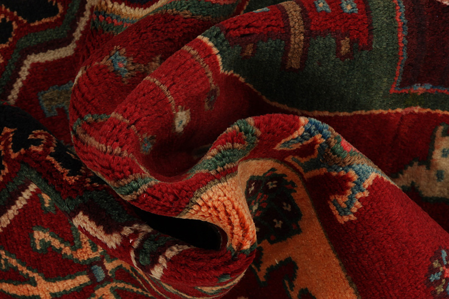 Abrash: Auf Grund des unterschiedlichen Wollfettgehalts und der unterschiedlichen Salzmenge während des Färbungsprozesses, hat die Wolle eine unterschiedliche Farbaufsaugfähigkeit. Vor dem Weben ist es nicht so sichtbar. Aber beim Weben entstehen Reihen mit unterschiedlichen Farbabstufungen der gleichen Farbe. Dies heißt Abrash und verdeutlicht die Natürlichkeit und die Originalität der Wolle, die mit keinen chemischen Mitteln behandelt wurde. Beispiele