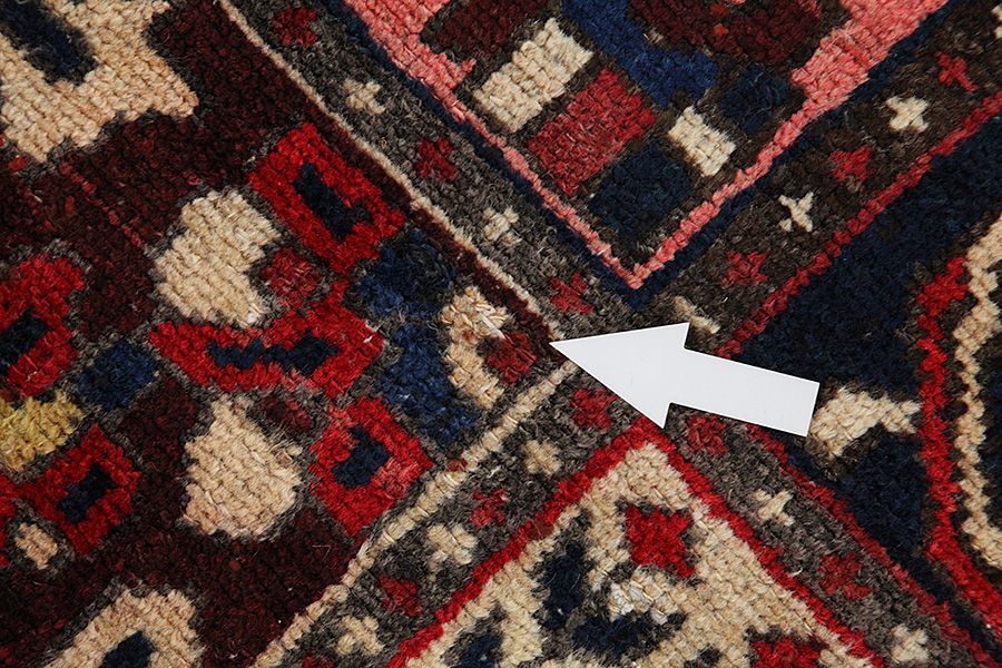 Abrash: Auf Grund des unterschiedlichen Wollfettgehalts und der unterschiedlichen Salzmenge während des Färbungsprozesses, hat die Wolle eine unterschiedliche Farbaufsaugfähigkeit. Vor dem Weben ist es nicht so sichtbar. Aber beim Weben entstehen Reihen mit unterschiedlichen Farbabstufungen der gleichen Farbe. Dies heißt Abrash und verdeutlicht die Natürlichkeit und die Originalität der Wolle, die mit keinen chemischen Mitteln behandelt wurde. Beispiele