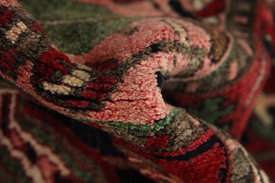 Abrash: Auf Grund des unterschiedlichen Wollfettgehalts und der unterschiedlichen Salzmenge während des Färbungsprozesses, hat die Wolle eine unterschiedliche Farbaufsaugfähigkeit. Vor dem Weben ist es nicht so sichtbar. Aber beim Weben entstehen Reihen mit unterschiedlichen Farbabstufungen der gleichen Farbe. Dies heißt Abrash und verdeutlicht die Natürlichkeit und die Originalität der Wolle, die mit keinen chemischen Mitteln behandelt wurde. Beispiele