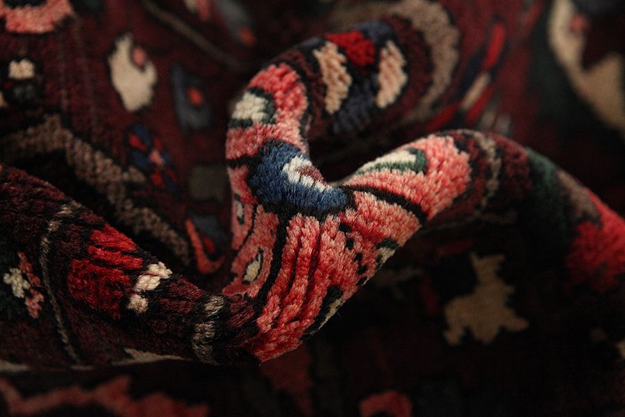 Abrash: Auf Grund des unterschiedlichen Wollfettgehalts und der unterschiedlichen Salzmenge während des Färbungsprozesses, hat die Wolle eine unterschiedliche Farbaufsaugfähigkeit. Vor dem Weben ist es nicht so sichtbar. Aber beim Weben entstehen Reihen mit unterschiedlichen Farbabstufungen der gleichen Farbe. Dies heißt Abrash und verdeutlicht die Natürlichkeit und die Originalität der Wolle, die mit keinen chemischen Mitteln behandelt wurde. Beispiele