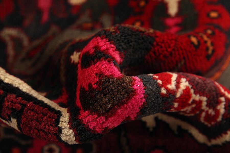 Abrash: Auf Grund des unterschiedlichen Wollfettgehalts und der unterschiedlichen Salzmenge während des Färbungsprozesses, hat die Wolle eine unterschiedliche Farbaufsaugfähigkeit. Vor dem Weben ist es nicht so sichtbar. Aber beim Weben entstehen Reihen mit unterschiedlichen Farbabstufungen der gleichen Farbe. Dies heißt Abrash und verdeutlicht die Natürlichkeit und die Originalität der Wolle, die mit keinen chemischen Mitteln behandelt wurde. Beispiele