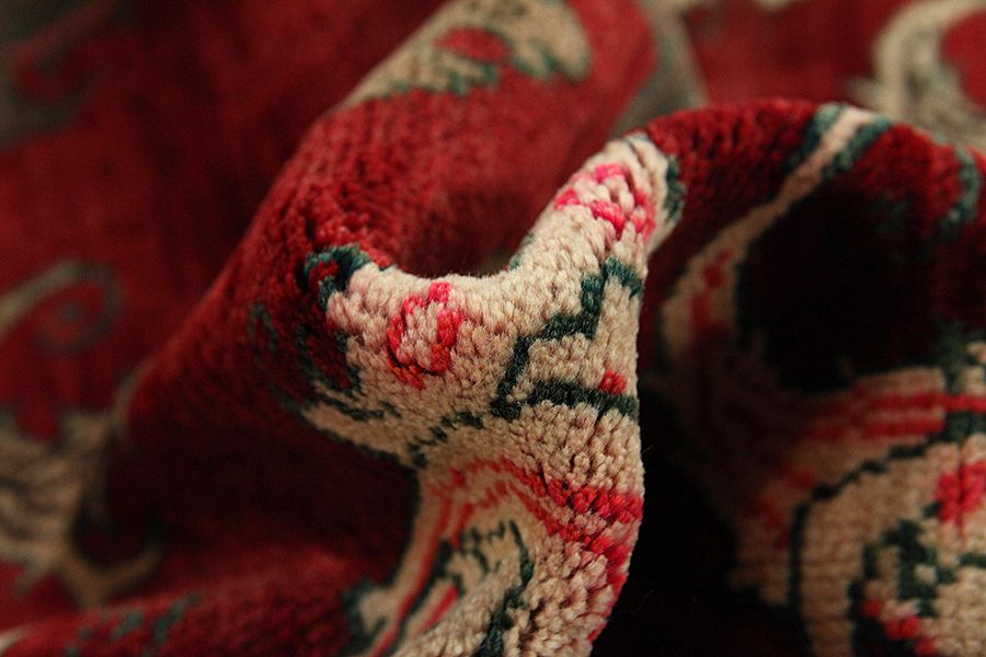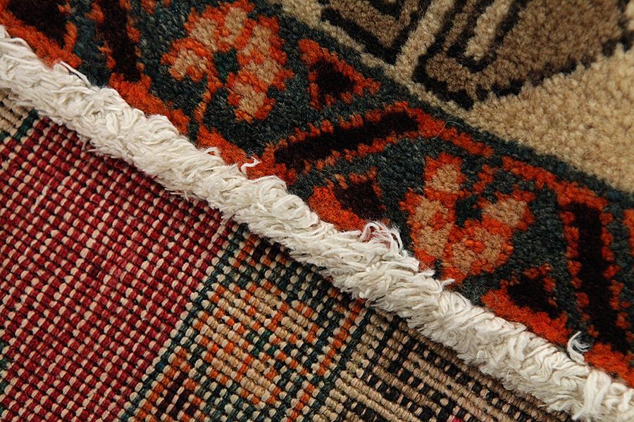 Abrash: Auf Grund des unterschiedlichen Wollfettgehalts und der unterschiedlichen Salzmenge während des Färbungsprozesses, hat die Wolle eine unterschiedliche Farbaufsaugfähigkeit. Vor dem Weben ist es nicht so sichtbar. Aber beim Weben entstehen Reihen mit unterschiedlichen Farbabstufungen der gleichen Farbe. Dies heißt Abrash und verdeutlicht die Natürlichkeit und die Originalität der Wolle, die mit keinen chemischen Mitteln behandelt wurde. Beispiele