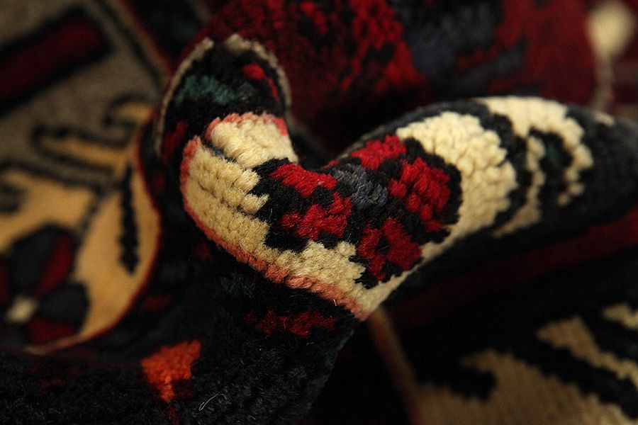 Abrash: Causa la differente grassezza delle lane e la differente quantità di sale ,nel corso del processo di tintura ,le lane assorbono quantitativi diversi di colore.Questo non è tanto visibile prima della tintura .Nel corso della tessitura però risultano variazioni cromatiche. Questo si chiama Abrash ed è la prova della genuinità e dell' autenticità di questi tappeti ,per i quali non vengono usate sostanze chimiche. Esempi