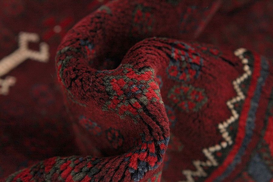Abrash: Auf Grund des unterschiedlichen Wollfettgehalts und der unterschiedlichen Salzmenge während des Färbungsprozesses, hat die Wolle eine unterschiedliche Farbaufsaugfähigkeit. Vor dem Weben ist es nicht so sichtbar. Aber beim Weben entstehen Reihen mit unterschiedlichen Farbabstufungen der gleichen Farbe. Dies heißt Abrash und verdeutlicht die Natürlichkeit und die Originalität der Wolle, die mit keinen chemischen Mitteln behandelt wurde. Beispiele