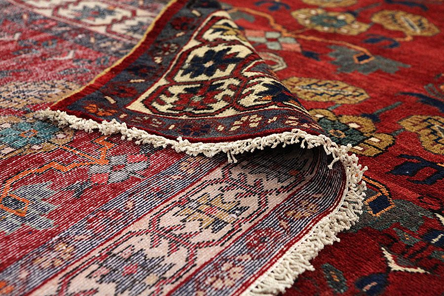 Abrash: Auf Grund des unterschiedlichen Wollfettgehalts und der unterschiedlichen Salzmenge während des Färbungsprozesses, hat die Wolle eine unterschiedliche Farbaufsaugfähigkeit. Vor dem Weben ist es nicht so sichtbar. Aber beim Weben entstehen Reihen mit unterschiedlichen Farbabstufungen der gleichen Farbe. Dies heißt Abrash und verdeutlicht die Natürlichkeit und die Originalität der Wolle, die mit keinen chemischen Mitteln behandelt wurde. Beispiele