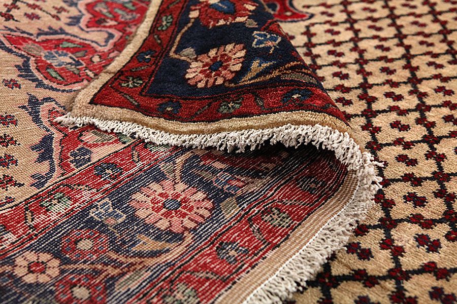 Abrash: Auf Grund des unterschiedlichen Wollfettgehalts und der unterschiedlichen Salzmenge während des Färbungsprozesses, hat die Wolle eine unterschiedliche Farbaufsaugfähigkeit. Vor dem Weben ist es nicht so sichtbar. Aber beim Weben entstehen Reihen mit unterschiedlichen Farbabstufungen der gleichen Farbe. Dies heißt Abrash und verdeutlicht die Natürlichkeit und die Originalität der Wolle, die mit keinen chemischen Mitteln behandelt wurde. Beispiele