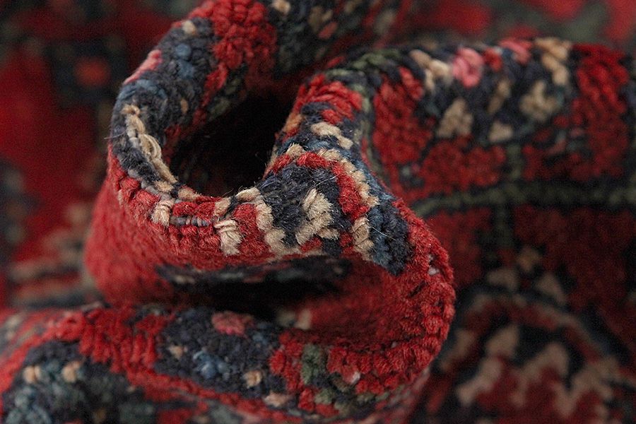 Abrash: Causa la differente grassezza delle lane e la differente quantità di sale ,nel corso del processo di tintura ,le lane assorbono quantitativi diversi di colore.Questo non è tanto visibile prima della tintura .Nel corso della tessitura però risultano variazioni cromatiche. Questo si chiama Abrash ed è la prova della genuinità e dell' autenticità di questi tappeti ,per i quali non vengono usate sostanze chimiche. Esempi