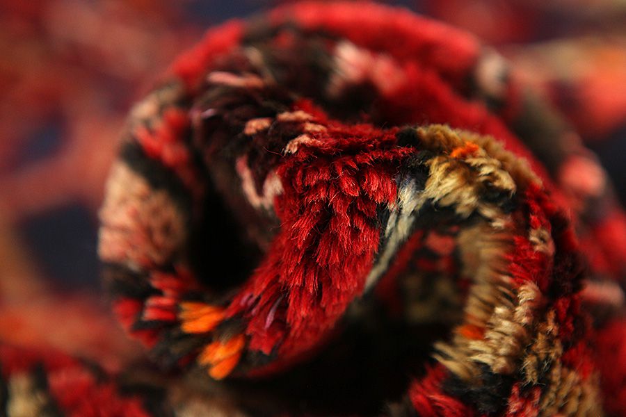 Abrash: Causa la differente grassezza delle lane e la differente quantità di sale ,nel corso del processo di tintura ,le lane assorbono quantitativi diversi di colore.Questo non è tanto visibile prima della tintura .Nel corso della tessitura però risultano variazioni cromatiche. Questo si chiama Abrash ed è la prova della genuinità e dell' autenticità di questi tappeti ,per i quali non vengono usate sostanze chimiche. Esempi