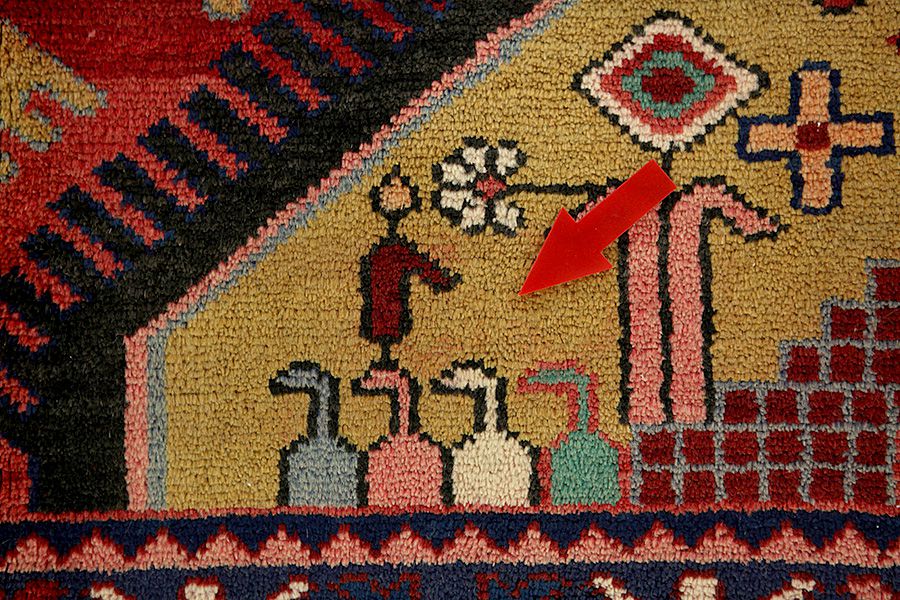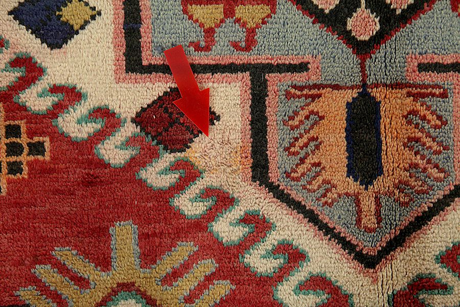 • Wichtige Bemerkung: Die Farbe des Teppichs ist an einer kleinen Stelle des Flors verbleicht.