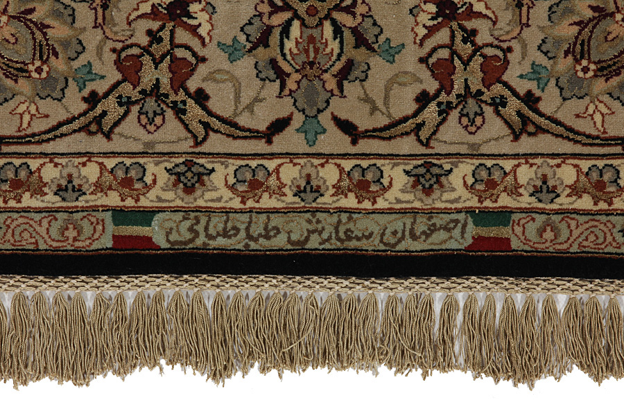 Im Zentrum Irans, inmitten des Zagros-Gebirges und der Wüste, liegt die Stadt Isfahan. Heute ist sie eine wichtige Industriestadt mit 1,2 Millionen Einwohnern. Architektonisch gesehen ist die Stadt ein Wunderwerk. Die alten Teppiche Isfahans haben im Gegensatz zu den neuen kein zentrales Medaillon. Die ganze Teppichfläche war voll von kunstvollen, geschwungenen Blumenranken und Palmetten. Die neuen Isfahan-Teppiche können nicht mit den alten Teppichen verglichen werden, die ausschließlich für Adlige hergestellt wurden. Die heutigen Isfahan Teppiche führen die Tradition fort. Sie sind dünn und werden kurz geschnitten, damit ihr Muster besser hervorgehoben wird. Bei der Knüpfarbeit wird außerdem Seide benutzt, um manche Stellen des Musters hervorzuheben, vor allem bei den Blumen. Die Kette ist entweder aus Seide oder aus Baumwolle.