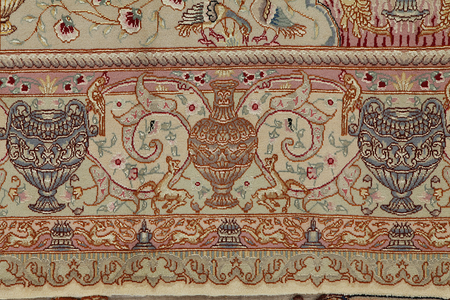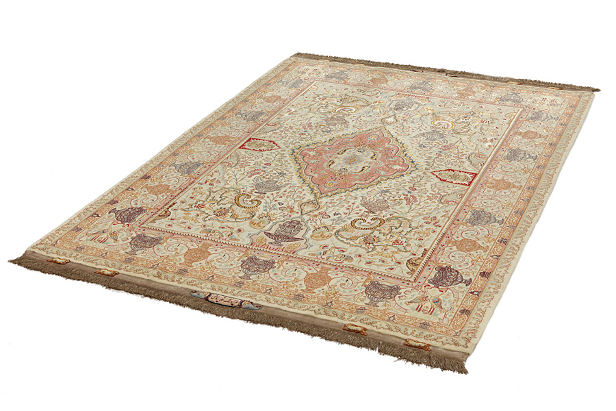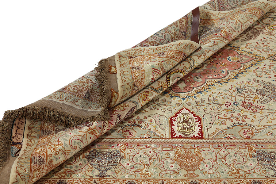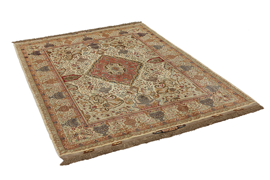 Die Stadt Tabriz ist die Hauptstadt der Provinz Aserbaidschan, im südwestlichen Iran. Bis zum Ende der Karawanen-Zeit war die Stadt das wichtigste Teppichhandels- und Teppichfertigungszentrum. Von hier aus besorgte sich der Westen die Meisterwerke, die bekannte und kompetente Teppichweber fertigten. Die hohe Qualität der Tabriz Teppiche hat sie auf dem Weltmarkt sehr bekannt gemacht. Es wurden viele Werkstätten handgefertigter Teppiche gegründet, in denen alte und neue Muster mit einer sehr hohen Knotendichte und von hochwertigen Materialien gefertigt wurden. Die Seide und die feine Qualitätswolle macht sie zu erstklassigen Teppichen. Keine andere Stadt in Persien fertigte so viele und vielfältige Teppiche.