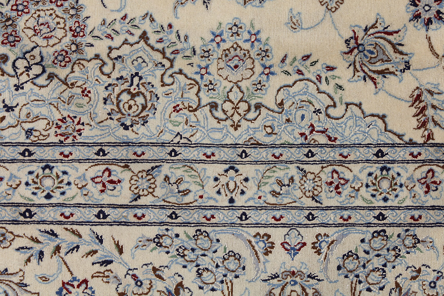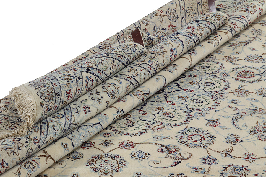 Die Nain Teppiche werden auch in den Gegenden in der Nähe und nicht nur in der Stadt Nain gefertigt. In den meisten Teppichen wird Baumwolle für die Kette verwendet. Die Kette besteht aus einer bestimmten Anzahl an Fäden, die als „La“ bezeichnet werden. Die Nain 6la Teppiche bestehen aus 6 Fäden (6la) und ihr Weben ist sehr dünn. Sie gelten als die elegantesten 6la der Qualität La.