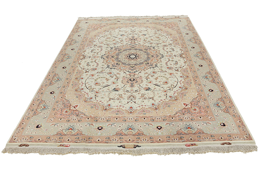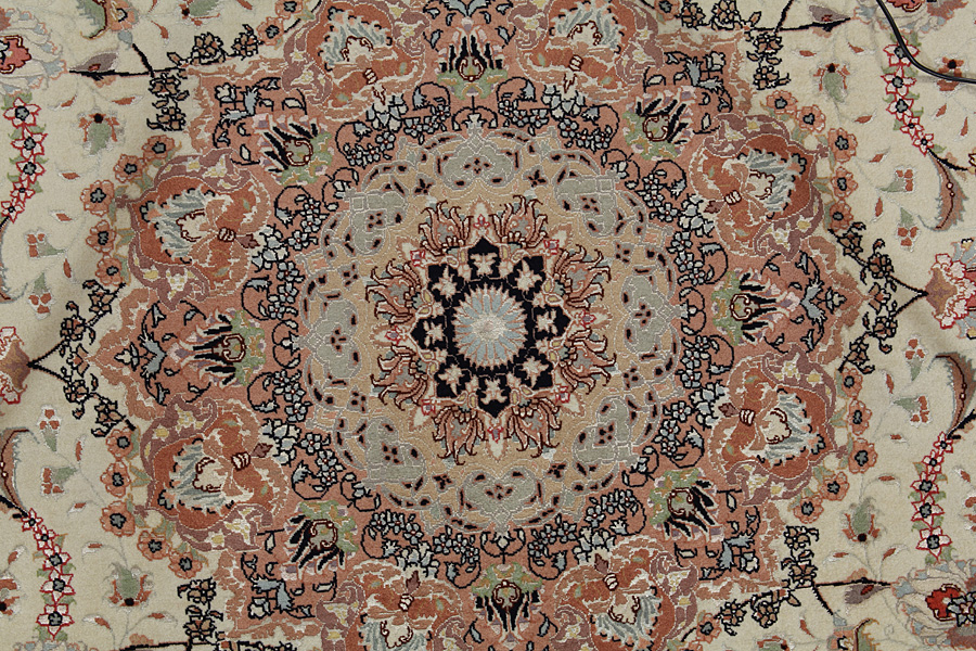 Tappeti Tabriz: La città di Tabriz è il capoluogo della provincia Azerbaijan,nell' Iran sudoccidentale.Fino alla fine dell' epoca delle carovane,era il centro più importante per il commercio e la tessitura dei tappeti.Da qui l' Occidente si procurava i capolavori creati da rinomati e abilissimi artigiani.L'alta qualità di questi manufatti li rese assai noti sui mercati di tutto il mondo.Sorsero molti laboratori di tappeti artigianali ,dove tessevano disegni vecchi e nuovi in nodi molto fitti e con materiali di ottima qualità. La seta e la lana sottile pregiata, li rendono tappeti d' alta classe.Da nessun' altra città della Persia passavano tanto grande varietà e tale quantità di tappeti.Con medaglioni o senza, i loro disegni sono pieni di fantasia e unici.Fiori, raffigurazioni e versi di poesie, decorano in oltre i tappeti. I colori di tappeti Tabriz dominanti sono il beige,il blu e il rosso.