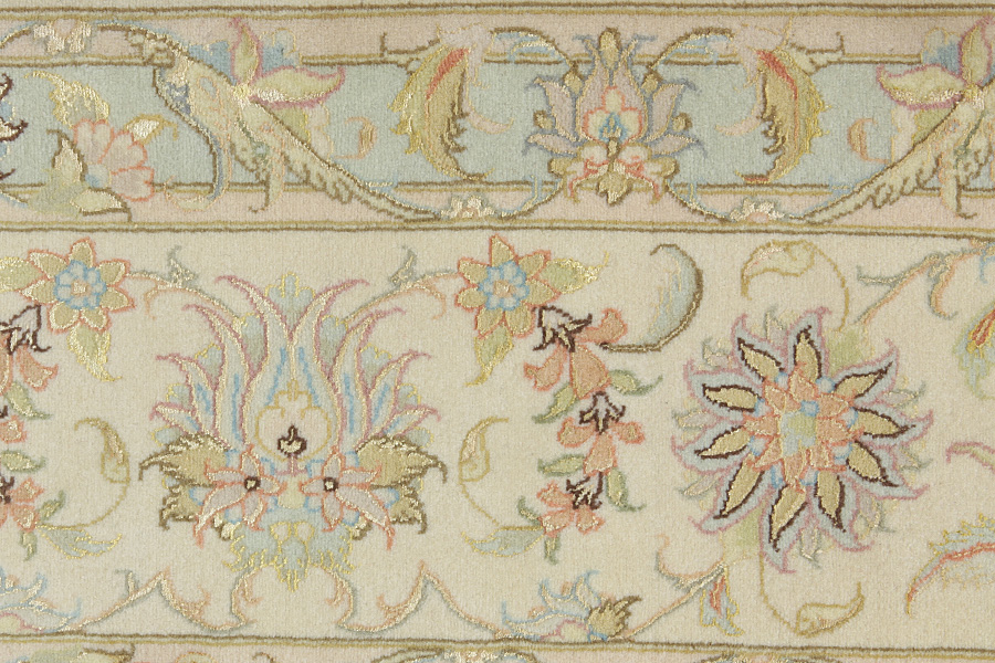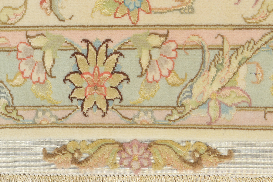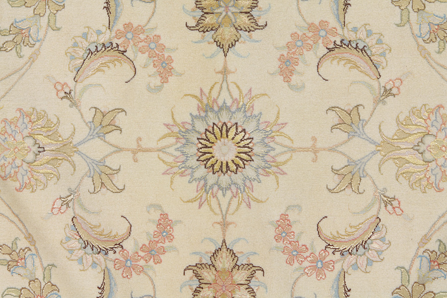 Tapis Tabriz: La ville Tabriz est la capitale de la province Azerbaïjan au sud-ouest d’Iran. Jusqu’à la fin de l’époque des caravanes Tabriz était le centre le plus important du commerce et du tissage des tapis. Par ici l’Ouest s’approvisionnait les chefs d’œuvres que des tisseurs renommés et capables tissent. Leurs qualités élevées ont fait les tapis connus aux marchés internationaux. Des atéliers des tapis noués à la main ont été crées où ils tissent de vieux et de nouveaux dessins avec une très grande densité en nœuds avec des matériaux de qualité excellente. La soie et la laine qualintative fine font les tapis de première classe. C’est la seule ville de Perse qui produit un si grand volume et et une si grande variété des tapis. Les tapis Tabriz sont impossants et ils ont leur style et leur originalité avec ou sans médaillon, avec des dessins pleins de l’imagination et de l’unicité des fleurs, des répresentations, des strophes, des poèmes à des couleurs comme le beige, le bleu et le rouge