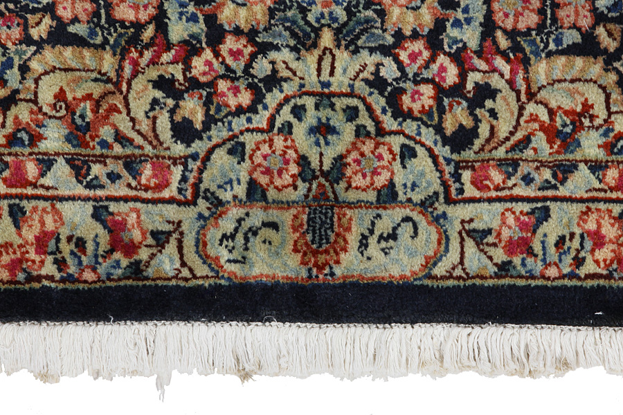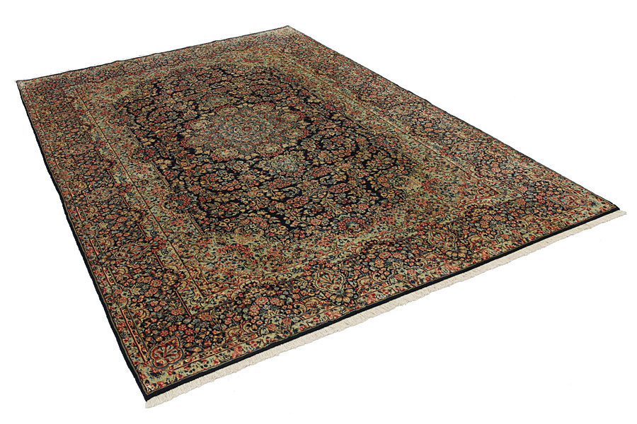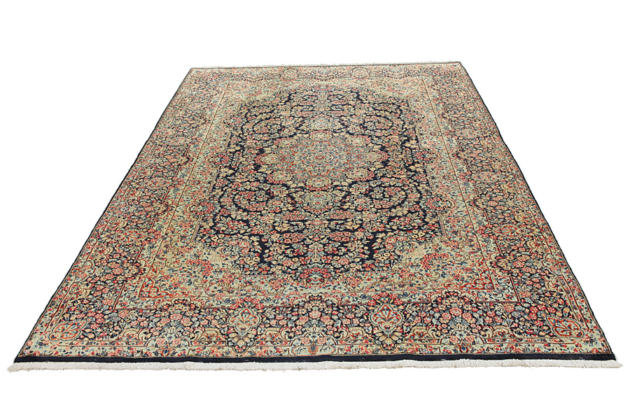Tappeti Kirman: La tessitura di tappeti,antica tradizione a Kirman, costituisce uno dei settori manufatturieri principali della città .I tappeti qui prodotti sono famosi in tutto il mondo.Il tappeto più antico rinvenuto a Kirman risale a 500 anni fa.In oltre si fabbricano secondo la tradizione anche altri prodotti tessili di cotone o di lana, come scialli e tessuti sottili.Quando nel 1271 Marco Polo fece visita alla città ,Kirman divenne un centro commerciale che collegava il Golfo Persico conl' Asia Centrale.Durante la dinastia dei Savafidi,suoi tappeti furono esportati in Inghilterra e in Germania.Caratteristici sono i colori vividi e la quantità di fiori stupendi,con ghirlande e medaglioni.Le lane nella zona di Kirman sono di buonissima qualità,con un grado di grassezza che gli dona lucentezza.