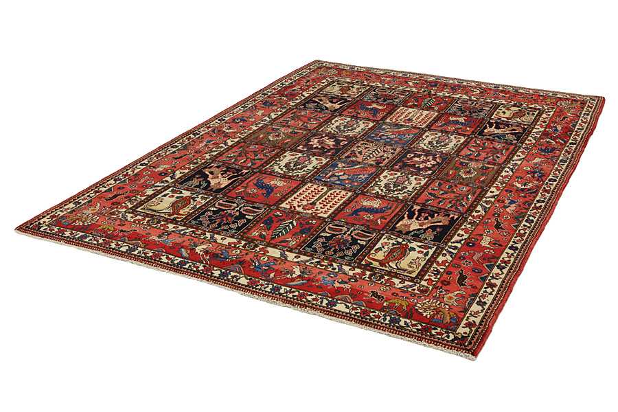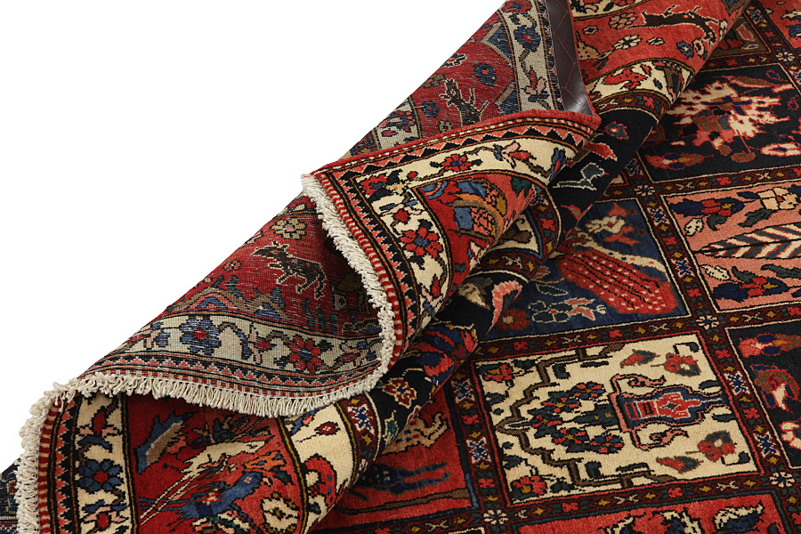 In den Bergen Zagros, westlich der Stadt Isfahan, um die Stadt Shahr-e-Kurd, leben die Nomaden Bakhtiar. Ihre Teppiche sind für ihr Muster mit den verschiedenen wiederkehrenden Quadraten, in denen Blumen oder Tiere abgebildet sind, bekannt. Aus diesem Grund wird dieses Muster als „Garten“ (Khesti) bezeichnet. Ihre Teppiche sind äußerst robust, dicht gewebt und sind aus hochwertiger persischer Wolle gefertigt. Die Wolle stammt von Schafen, die auf Hochebenen grasen. Die besten Bakhtiar Teppiche, die über die höchste Knotendichte verfügen, werden oft als Bibibaf-Teppiche bezeichnet. Außerdem sind auf vielen Mustern Einflüsse aus Isfahan-Teppichen zu sehen (Boldaji, Ferdan, Saman).