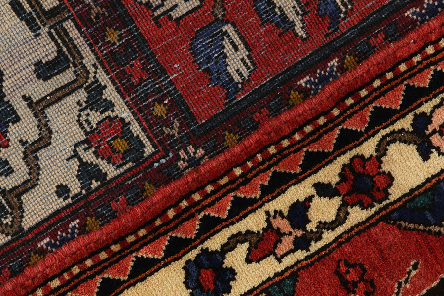 Abrash: Auf Grund des unterschiedlichen Wollfettgehalts und der unterschiedlichen Salzmenge während des Färbungsprozesses, hat die Wolle eine unterschiedliche Farbaufsaugfähigkeit. Vor dem Weben ist es nicht so sichtbar. Aber beim Weben entstehen Reihen mit unterschiedlichen Farbabstufungen der gleichen Farbe. Dies heißt Abrash und verdeutlicht die Natürlichkeit und die Originalität der Wolle, die mit keinen chemischen Mitteln behandelt wurde. Beispiele